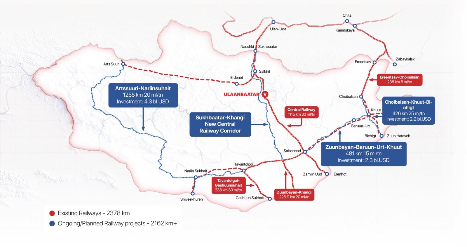 - The Central Corridor Railway, connecting Altanbulag to the Khangi port.