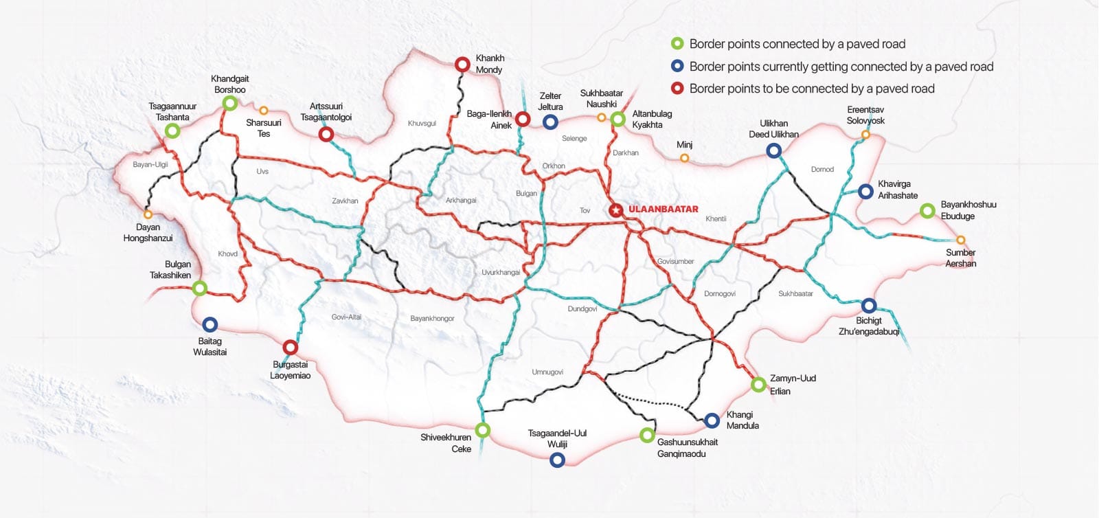 Under the framework of the Border Revival Policy, plans are underway to connect 11 border checkpoints by road and 4 by rail. As a result, the government aims to triple the overall capacity of Mongolia’s border points and double the country’s exports.