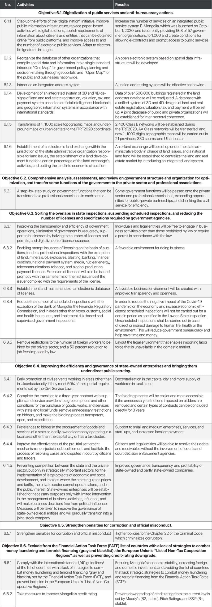 To improve governance, the government is taking wider measures for e-governance initiatives. The Government of Mongolia has set a goal to reduce the number of government licenses, signatures, and contracts issued to businesses by 50 percent in 2024, which will drastically reduce the human factor in civil services.
