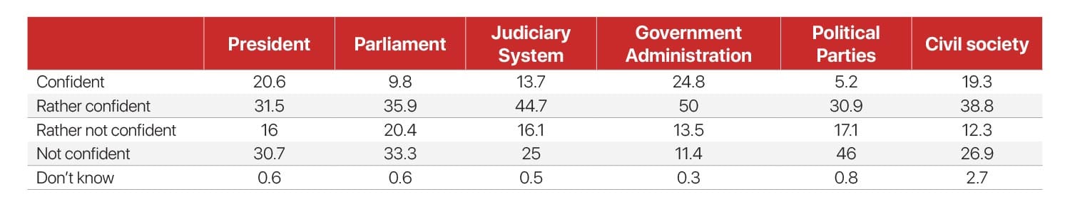 The Sant Maral Foundation, a reputable and politically impartial polling organization in Mongolia, conducted a survey of 1,000 respondents in the 2024 spring, right before the parliamentary elections. The results showed a significant lack of trust in the current political system among the respondents.