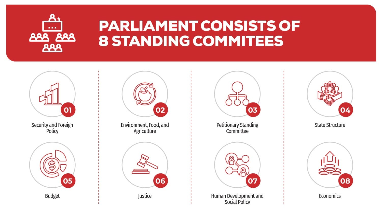 Within the scope of their responsibilities, these standing committees are responsible for pre-discussing draft bills and other parliamentary decisions submitted by the initiator, and then submitting them to the plenary session, exercising parliamentary oversight, and drafting parliamentary resolutions.