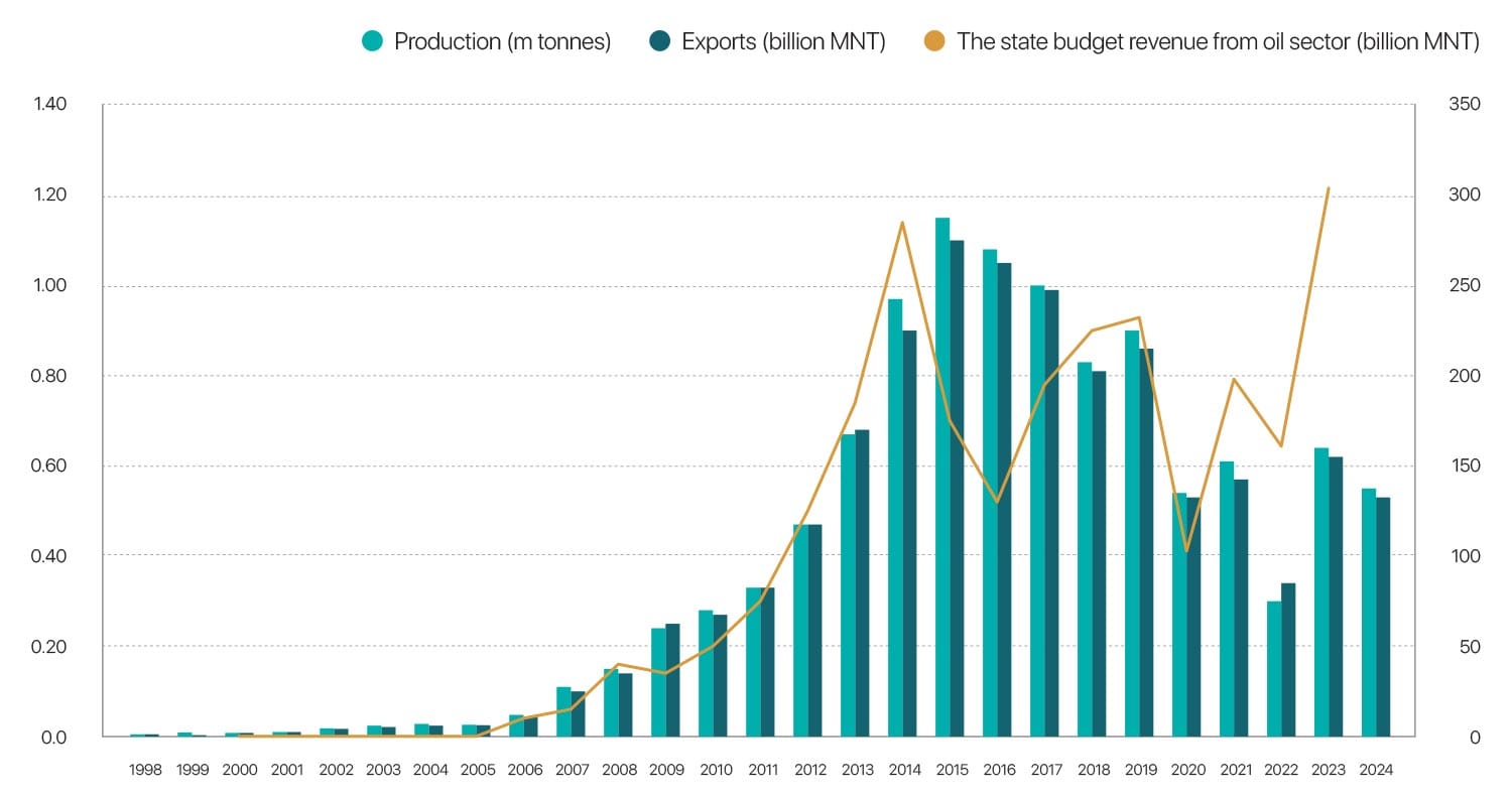 Mongolia produced a total of 85 million barrels, or 11.16 million tonnes of oil, and exported 81.5 million barrels, or 10.71 million tonnes of oil to China in 1996-2024, generating MNT 2.4 trillion /as of Q1 of 2024/ to the state budget from oil. The government fully supports domestic oil industry.