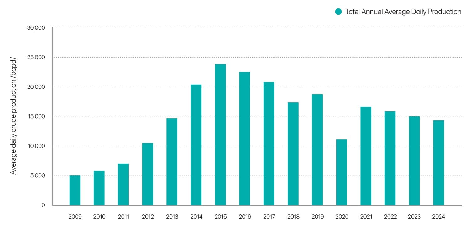 As of 2024, out of the 34 petroluem fields, 4 fields are advanced to production, while exploration is being conducted on 9 fields.
