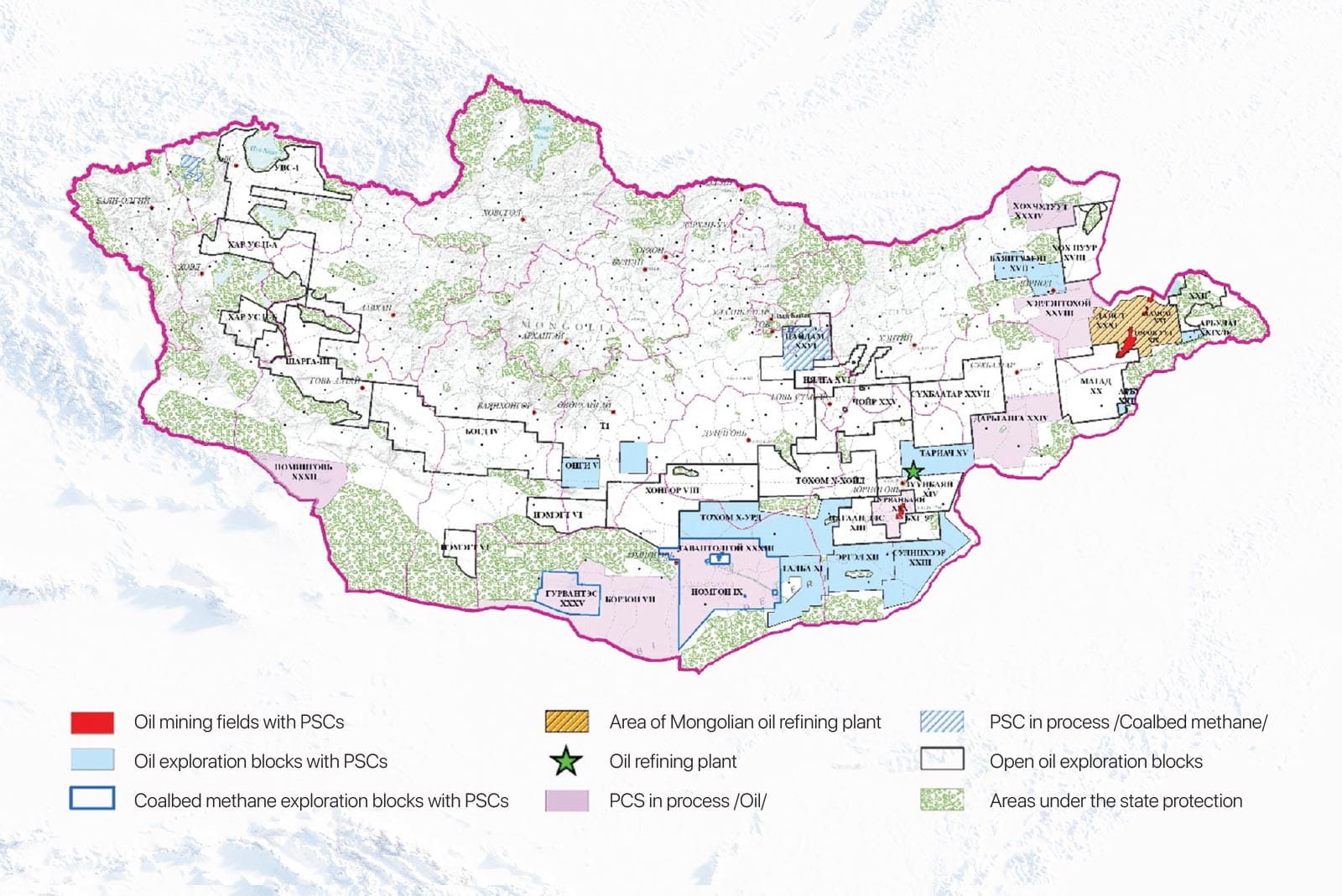 Ever since then, Mongolia has identified 39 petroleum exploration blocks in total. Among these, 4 blocks are under oil production and extraction, 9 blocks are under oil exploration, and 6 blocks are designated for unconventional oil exploration, including coalbed methane gas. These projects are carried out under Production Sharing Contracts granted by the Government of Mongolia.