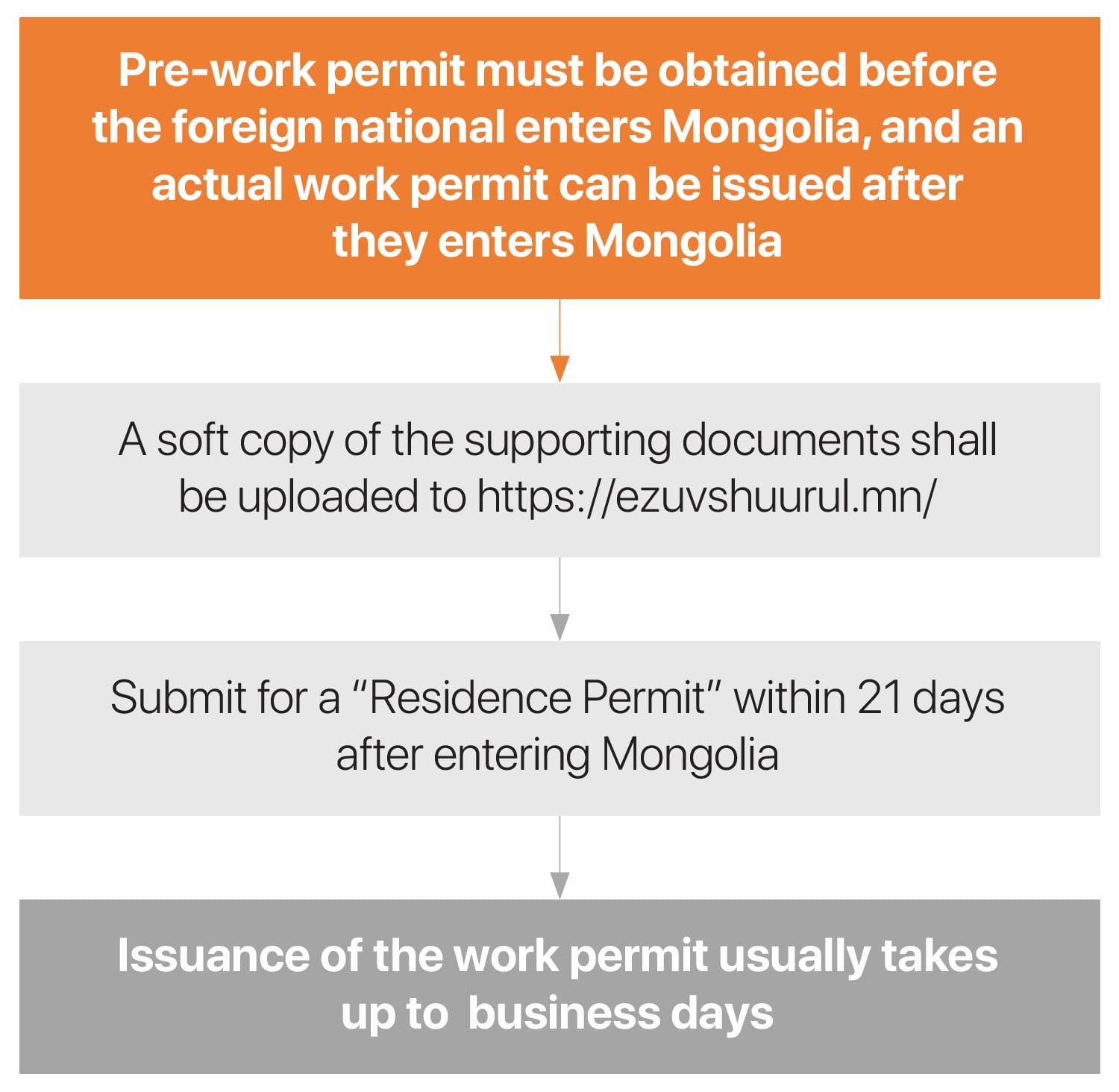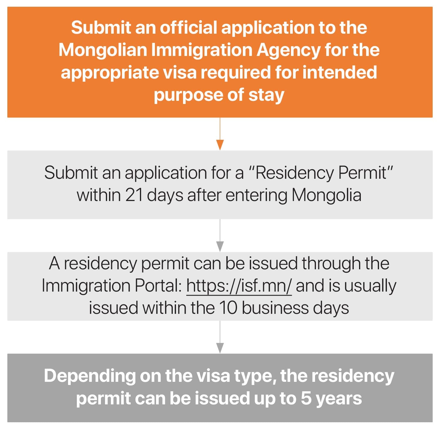 - Letter from the sponsoring entity, including intended date of entry into Mongolia, intended duration of stay, and name of border checkpoint where the overseas national intends to enter.