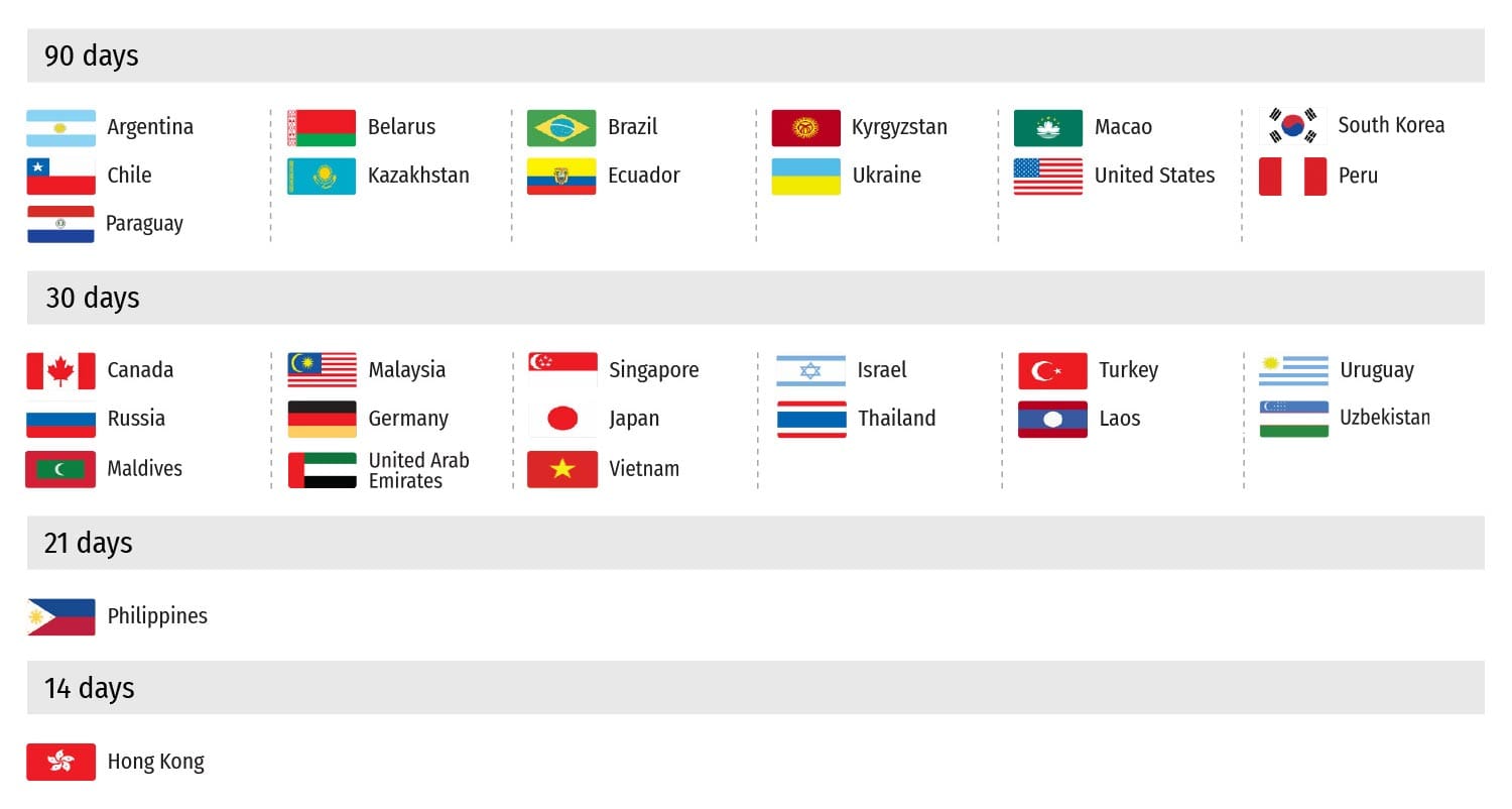 The visa exemption includes the following: