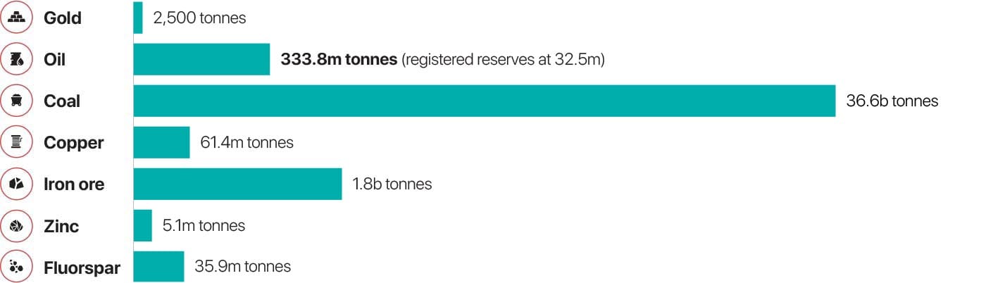 Mongolia’s proven mineral resources in tonnes